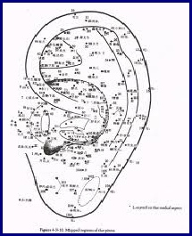 door bepaalde punten op het oor te prikken ,deze lichaamsdelen hadden dus een corresponderend punt in het oor.